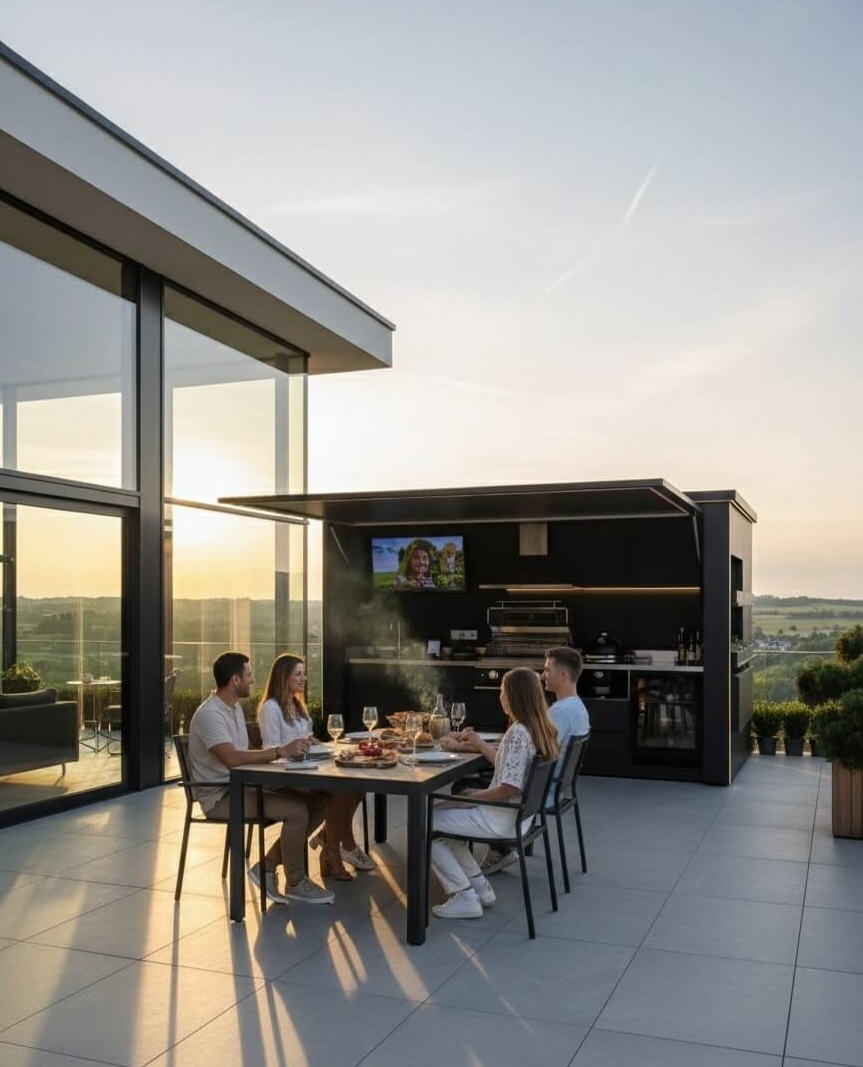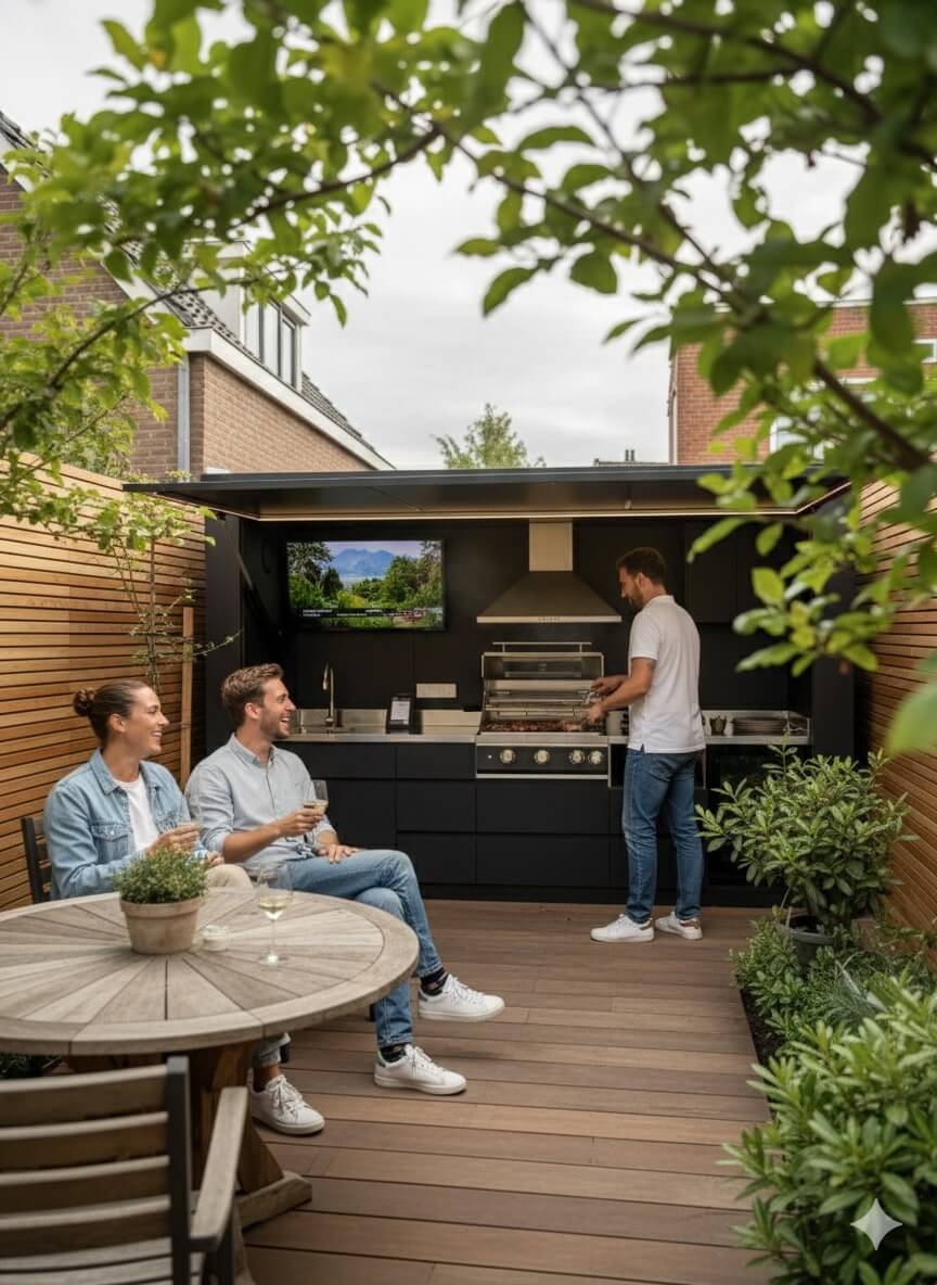 De eerste buitenkeuken die verschijnt en verdwijnt op jouw moment.